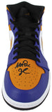 This Autographed Right Nike Air Jordan 1 Mid 2022 Lakers Shoe w/ Case has been Personally Signed by Magic Johnson of the Los Angeles Lakers. This item is 100% Authentic to include a Certificate of Authenticity (COA) / hologram by Beckett Authentication Services. This is a BAS Witnessed Protection Program item which means a Beckett Authentication Service representative was present when this item was being signed. We conducted an autograph signing with Magic Johnson where multiples of the same item were signed. While the photographs are representative of this item, the size, placement and strength of the signature may vary. Each item is hand signed, therefore, each autograph is unique. This item can be verified through BAS Witnessed. The size of the shoe may vary, we originally had size 11 & 12, please reach out if you would like to request a specific size shoe.