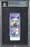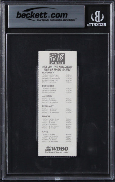 This Autographed Ticket Graded NM-MT 8, Auto Graded Gem Mint 10! October 17, 1992 Magic Vs Heat Ticket Stub with the inscription of "NBA Debut" has been Personally Signed by Shaquille O'Neal of the Orlando Magic. This item is 100% Authentic, it comes slabbed and authenticated by Beckett Authentication Services. The authenticity can be verified on Beckett Authentication Services website.
