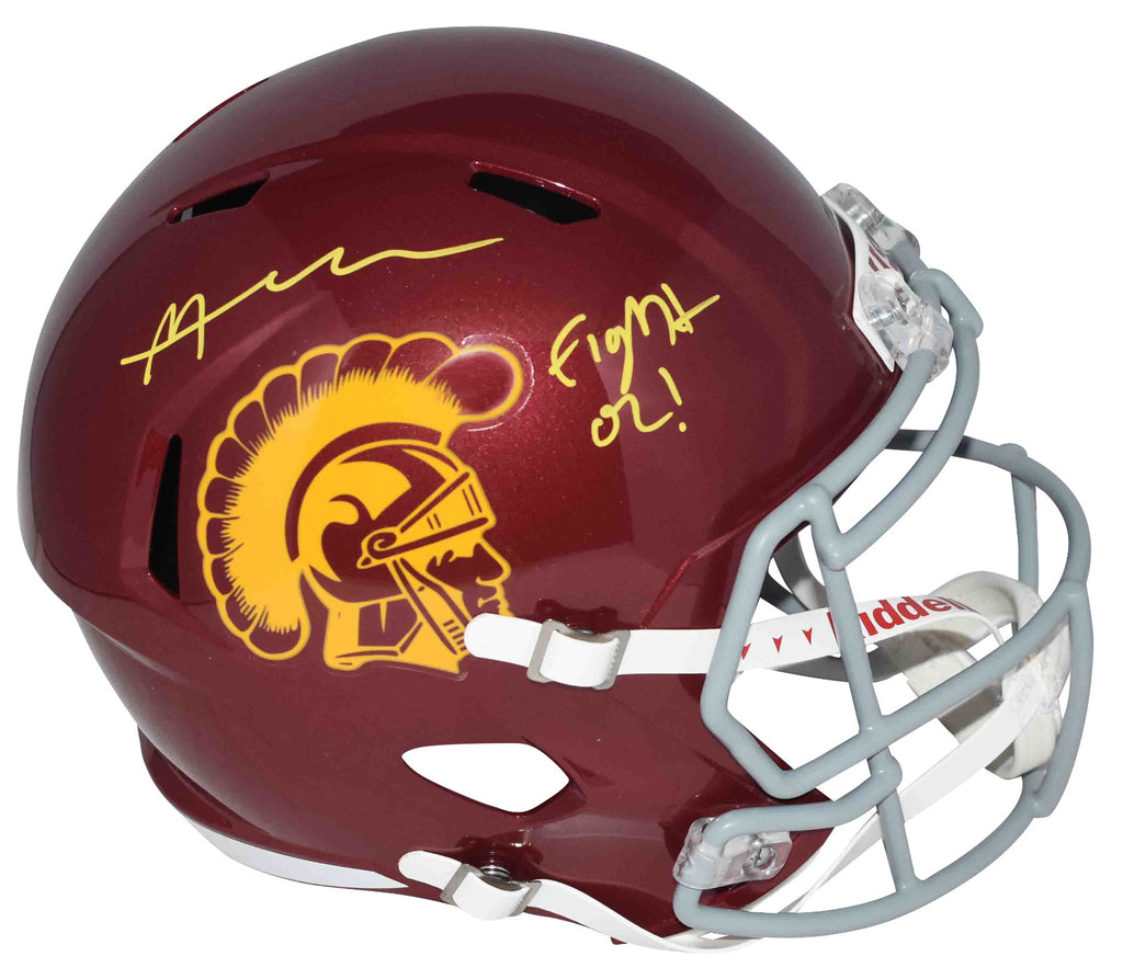 Malachi Nelson, quarterback for the Trojans, has hand signed this USC Riddell Speed full-size replica helmet at a private signing. He included the inscription "Fight On" with his signature. This item is authenticated by Beckett Authentication Services and was signed in the presence of one of their representatives. Their tamper-evident hologram featuring a QR code and serial number is on the item. The authenticity can be verified online by entering the serial number or scanning the QR code.Item pictured may not be the exact item you will receive. It will be similar quality, and we guarantee your satisfaction.