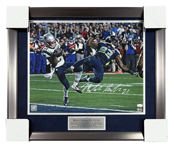 Malcolm Butler Patriots Signed Super Bowl XLIX 16x20 Matted & Framed Photo JSA