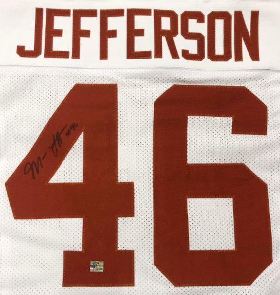 Custom on-field style jersey. Everything is sewn on, size XL. Hand-signed in black felt-tip pen by Malik Jefferson. The lot / autograph(s) includes an official Malik Jefferson player hologram for authenticity purposes.Authentication: Jefferson Hologram