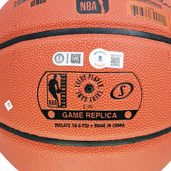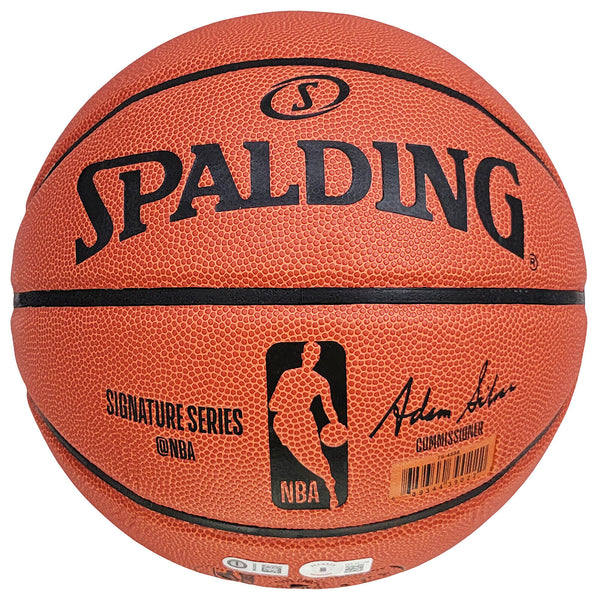 This is an Official Spalding Signature Series Basketball that has been hand signed by Manu Ginobili. This item has been witnessed and certified authentic by Beckett Authentication (BAS) and comes with their tamper-proof witness sticker. Beckett Authentication has recently changed their physical certificate card policy where they no longer match their tamper-proof sticker with a physical certificate. A certificate can be printed on Beckett's website for the matching authentication number.