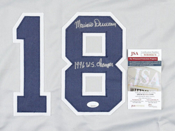 Custom on-field style jersey. Everything is sewn on, size XL. Hand-signed and inscribed by Mariano Duncan. The lot / autograph(s) includes an official James Spence Authentication (JSA) hologram and matching COA for authenticity purposes. The signing of this item was witnessed by JSA.Authentication: JSA COA