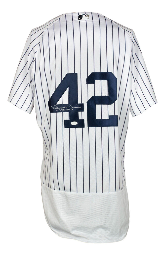 Featured is a Mariano Rivera signed New York Yankees Majestic authentic baseball jersey, inscribed "HOF 2019". This jersey has been hand signed by Rivera and comes with the JSA hologram and certificate of authenticity. This jersey is size 44. This jersey would make a great addition to any sports memorabilia collection.. SPECIFICATIONS Autographed By: Mariano Rivera Team: New York Yankees Sport: Baseball Authentication: James Spence Authentication (JSA)