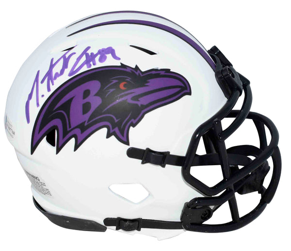 Mark Andrews, Pro Bowl tight end for the Baltimore Ravens, has hand signed this Ravens Riddell Speed Lunar mini helmet at a private signing. This item comes with a certificate of authenticity (COA) from Beckett Authentication Services and was signed in the presence of one of their representatives. You will receive a serial-numbered COA along with a matching serial-numbered sticker on the helmet. The authenticity can be verified online by entering the serial number.Item pictured may not be the exact item you will receive. It will be similar quality, and we guarantee your satisfaction.
