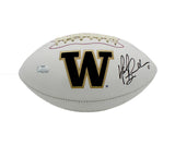 A Washington Football Team Embroidered White NFL Football hand signed by Mark Burnell. The item and signature are in excellent condition. Mark was drafted into the NFL in 1993, Round:5,Pick:118. Mark is a Super Bowl Champion (XLIV). Mark 3xPro Bowl (1996,1997,1999). Mark is a NFL passing yard leader (1996). Mark is Pride of the Jaguars. Mark is National Champion (1991). AUTHENTICATION: The item is accompanied by a Certificate of Authenticity - Serial Numbered and Databased Hologram - Picture of Mark from the Signing