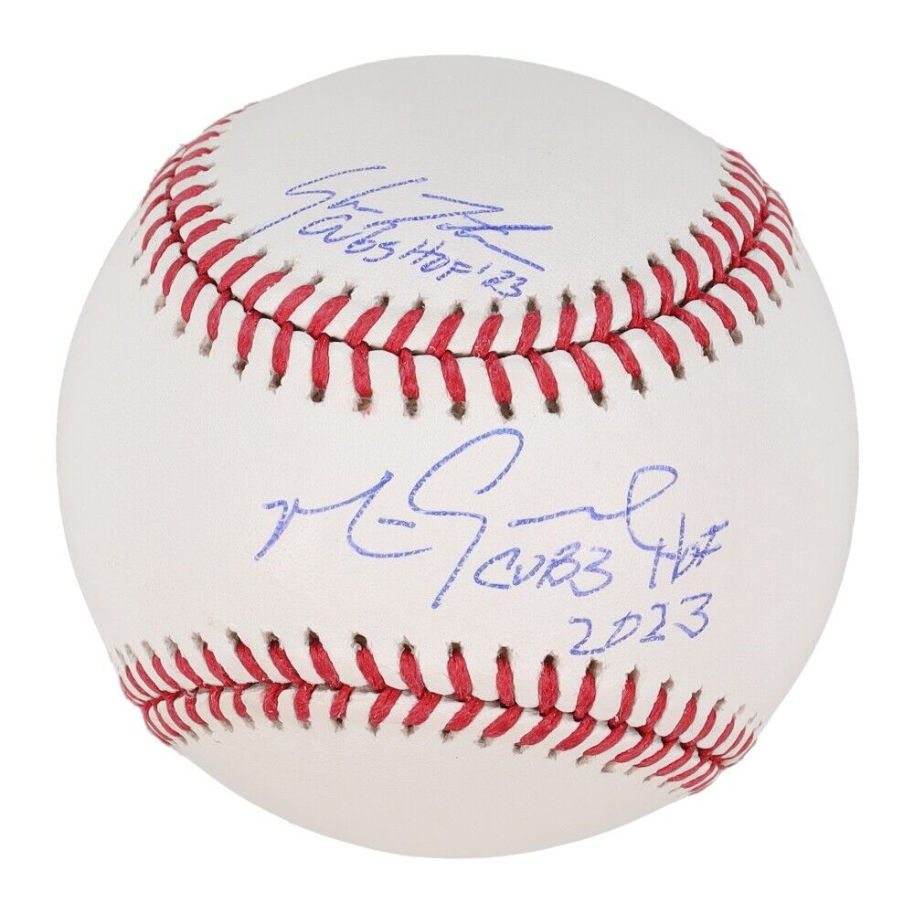 Rawlings Official Major League baseball. Hand-signed and inscribed by Mark Grace & Shawon Dunston (Chicago Cubs).The autograph includes an official Beckett Authentication Services serially numbered hologram and QR Code Card for authenticity purposes and an official James Spence Authentication (JSA) hologram and QR Code Card for authenticity purposes. The signing of this item was witnessed by JSA.Authentication: Beckett Hologram & JSA Hologram with 2 QR Code Cards