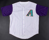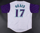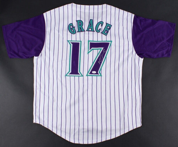 Custom on-field style jersey. Everything sewn on, size XL. Hand-signed in silver paint pen by Mark Grace. (Cubs) The autograph includes an official James Spence Authentication (JSA) hologram and matching COA for authenticity purposes. The signing of this item was witnessed by JSA.Authentication: JSA COA