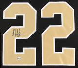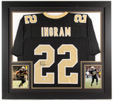 Custom framed display measures 31" x 35" in size. Features a jersey which has been hand-signed in black felt-tip pen by Mark Ingram. The lot / autograph(s) includes an official Beckett Authentication Services serially numbered hologram and matching COA for authenticity purposes. The signing of this item was witnessed by Beckett.Authentication: Beckett COA