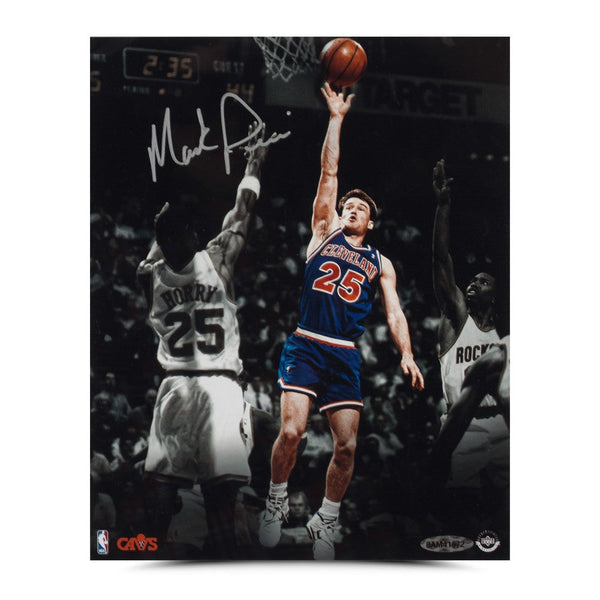 Playing in an era when the Pistons were making their run as back-to-back NBA Finals champions followed by the Bulls' incredible run on three consecutive titles, the Mark Price-led Cavaliers faced some of the toughest competition in the history of the Eastern Conference. In his nine seasons in Cleveland, Price led the Cavs to the playoffs seven times. He averaged 17.4 points and 7.0 assists per game in 47 postseason games, all in Cleveland. He also shot an incredible 94.4 percent from the free throw line in the playoffs as he made 202 of 214 attempts. He was a perfect 30-for-30 from the charity stripe in the 1990 playoffs. He carried the Cavs to the Eastern Conference Finals against nemesis Chicago but came up short in six games. In the series, Price averaged 18.5 points and 5.3 assists per game while shooting 55 percent from 3-point range and 92 percent from the free throw line. He was the best player on a stacked Cleveland team that series, driving to the basket at will when he wasn't hitting from long distance. In this image, Price is shooting one of his patented floaters over the outstretched arm of Rockets forward Robert Horry. Price has signed this Floater 8" x 10" image in silver paint pen. His signature is deemed authentic by virtue of Upper Deck Authenticated's Five Step Process.
