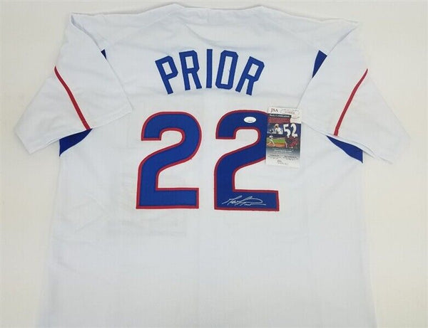 Custom on-field style jersey. Everything is sewn on, size Adult XL. Hand-signed and inscribed in silver paint pen by Mark Prior. The lot / autograph(s) includes an official James Spence Authentication (JSA) hologram and matching COA for authenticity purposes.Authentication: JSA COA