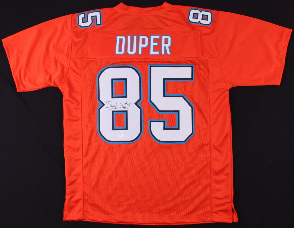 Custom on-field style jersey. Everything is sewn on, size XL. Hand-signed in black felt-tip pen by Mark "Super" Duper. The lot / autograph(s) includes an official James Spence Authentication (JSA) hologram and matching COA for authenticity purposes. The signing of this item was witnessed by JSA.Authentication: JSA COA