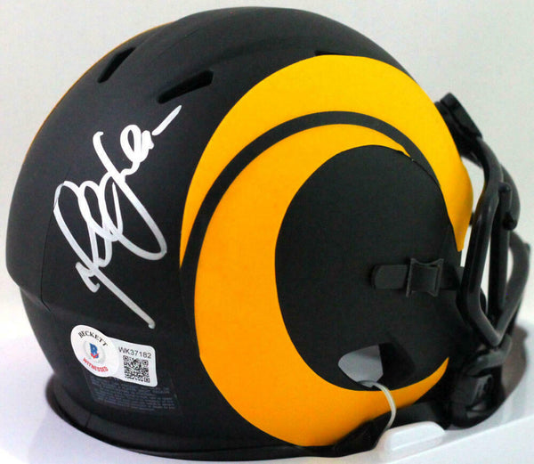 Marshall Faulk Autographed St. Louis Rams Eclipse Mini Helmet - Beckett W*Silver This is a Marshall Faulk of the St. Louis Rams hand autographed Riddell Football Eclipse Speed Mini Helmet. This item has a Beckett Witnessed Authentication, which comes with a numbered and a matching Beckett Certificate of Authenticity. You can view this item on the Beckett Authentication website and it shows when and where the item was signed. It was signed either at a public autograph appearance or a private signing. This is a stock photo of the item. Although you may not receive this exact item, the item you receive is virtually identical, brand new, and in great shape.