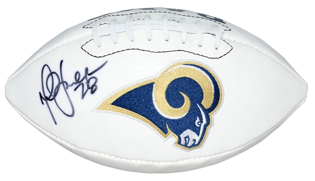 Marshall Faulk, former Hall of Fame running back for the St Louis Rams, has hand signed this Rams white panel logo football at a private signing. This item comes with a certificate of authenticity (COA) from JSA - James Spence Authentication and was signed in the presence of one of their representatives. You will receive a serial-numbered COA along with a matching serial-numbered sticker on the ball. The authenticity can be verified online by entering the serial number.Item pictured may not be the exact item you will receive. It will be similar quality, and we guarantee your satisfaction.