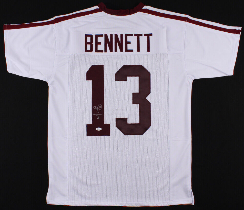 Custom on-field style jersey. Everything sewn on, size XL. Hand-signed in silver paint pen by Martellus Bennett. The lot / autograph(s) includes an official James Spence Authentication (JSA) hologram and matching COA for authenticity purposes. The signing of this item was witnessed by JSA.Authentication: JSA COA