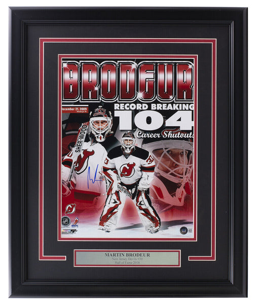 Featured is a Martin Brodeur signed framed 11x14 New Jersey Devils hockey photo. This photo was hand signed by Martin Brodeur and has been authenticated by Beckett authentication services. Included with the photo is a Beckett hologram and certificate of authentication. Professionally framed and matted, measures 16x20 inches in total size, ready for display. SPECIFICATIONS Autographed By: Martin Brodeur Team: New Jersey Devils Sport: Hockey-NHL Authentication: Beckett Grading Services