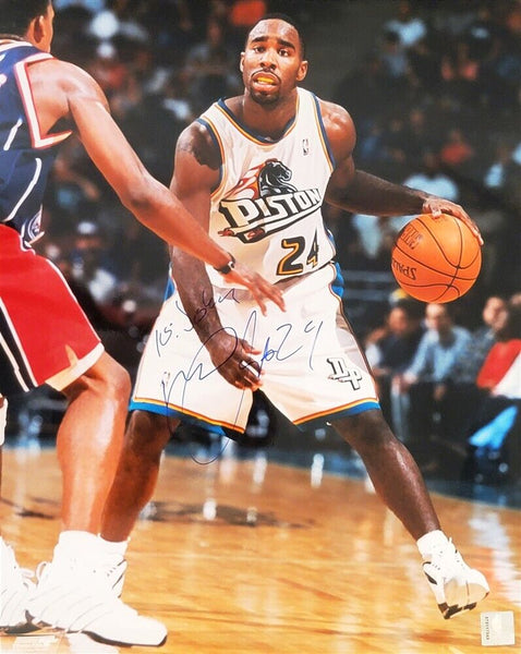 This is a 16x20 Photo that has been hand signed by Mateen Cleaves. This item was inscribed "To John." This item is guaranteed to pass any third party authentication company including Beckett, PSA/DNA, & JSA authentication.