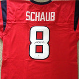 Custom on-field style jersey. Everything sewn on, size XL. Hand-signed in black felt-tip pen by Matt Schaub (Falcons). The lot / autograph(s) includes an official James Spence Authentication (JSA) hologram and matching COA for authenticity purposes. The signing of this item was witnessed by JSA.Authentication: JSA COA