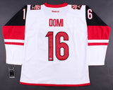 Reebok on-ice style jersey. Everything sewn on, size 50. Hand-signed in black felt tip pen by Max Domi (Coyotes). The autograph includes an official Beckett Authentication Services serially numbered hologram and matching COA for authenticity purposes.Authentication: Beckett COA