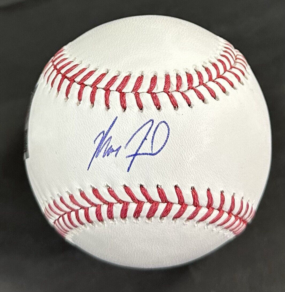 Max Fried hand signed official MLB baseball. Hand signed by the star lefty pitcher in bold blue on the sweet spot. Fridge just signed a big contract with the New York Yankees. Rawlings official MLB baseball.