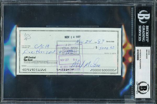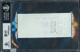 This is a 3x6 Ticket that has been hand signed by Max McGee. It has been certified authentic by Beckett Authentication Services (BAS) and comes encapsulated in their tamper-proof holder.