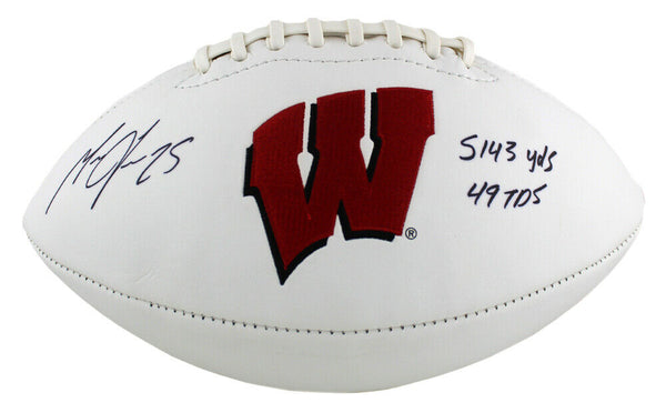 A Wisconsin Badgers Embroidered NCAA Logo Football hand signed by Melvin Gordon. The item and signature are in excellent condition. In addition to signing his name, Melvin inscribed, " 5143 yds, 49 TDS " on the item. Melvin Gordon III is an American football running back for the Los Angeles Chargers of the National Football League. He played college football at Wisconsin, and was drafted by the Chargers in the first round of the 2015 NFL Draft. AUTHENTICATION: The item is accompanied by a Mevlin Gordon Exclusive Certificate of Authenticity - Serial Numbered and Databased Hologram - Picture of Melvin from the Signing.