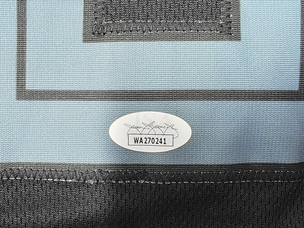 This is a Blue Jersey that has been hand signed by Desmond Bane. This is a custom jersey with no name brand. The approximate size is XL. It has nice sewn in name and numbers. This item has been certified authentic by JSA and comes with their tamper-proof sticker and matching certificate of authenticity.