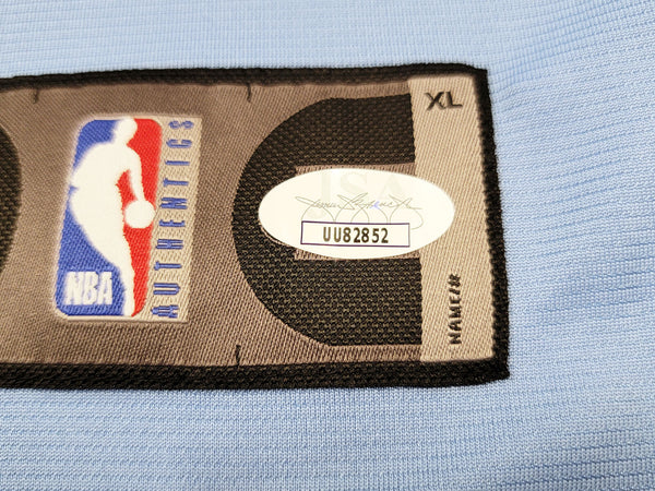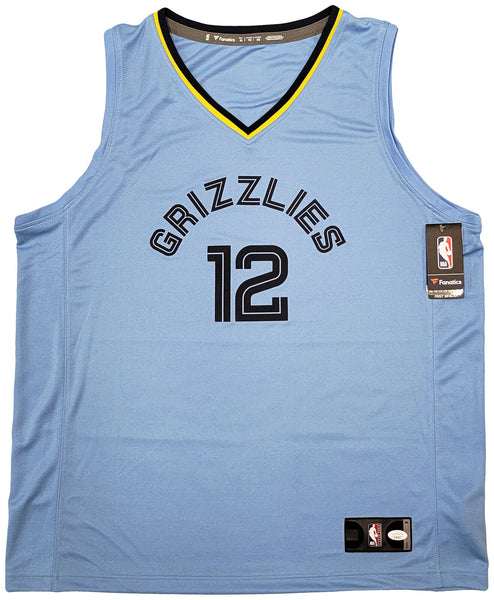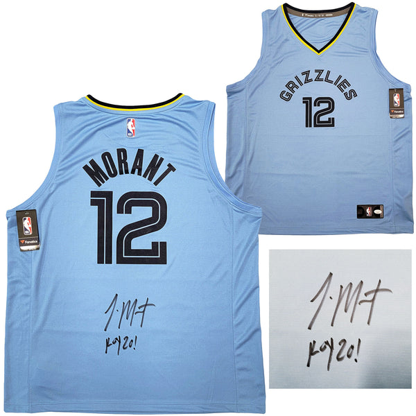 This is a Light Blue Fanatics Memphis Grizzlies Jersey that has been hand signed by Ja Morant. This jersey is Size XL. This item was inscribed "ROY 20." This item has been certified authentic by JSA and comes with their tamper-proof sticker and matching certificate of authenticity.