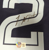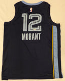 This is a Dark Blue Nike Icon Swingman Edition Memphis Grizzlies Jersey that has been hand signed by Ja Morant. This jersey is Size L. This item has been certified authentic by Beckett Authentication (BAS) and comes with their tamper-proof QR Code sticker that can be verified on the Beckett-authentication.com.