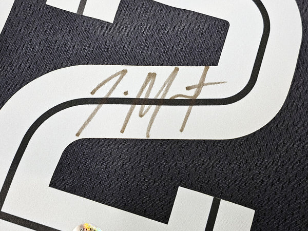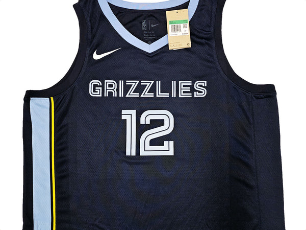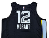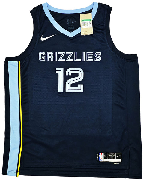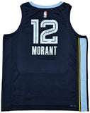This is a Dark Blue Nike Memphis Grizzlies Icon Edition Swingman Jersey that has been hand signed by Ja Morant. This jersey is Size 52. This item has been certified authentic by Beckett Authentication (BAS) and comes with their tamper-proof QR Code sticker that can be verified on beckett-authentication.com.