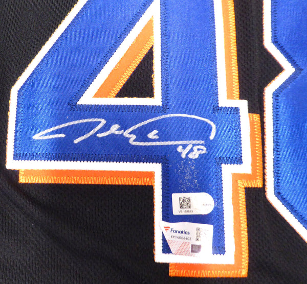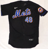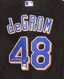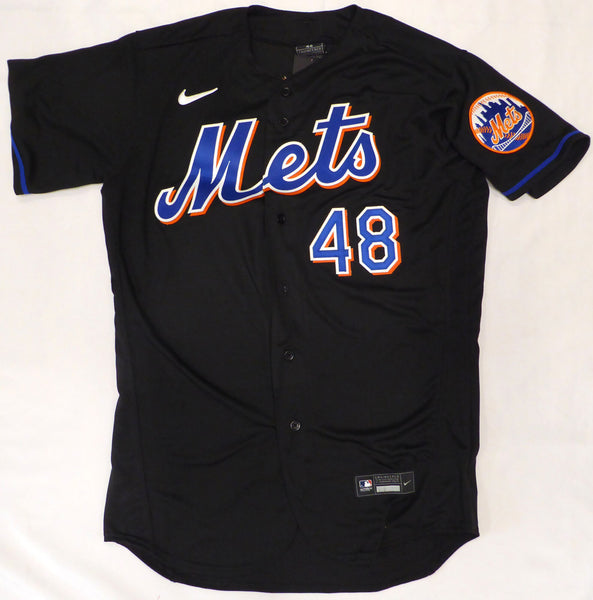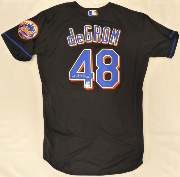 This is a Black Nike Authentic New York Mets Jersey that has been hand signed by Jacob deGrom. This jersey is Size 44. NOTE: There is a stain on the jersey, as shown in the pictures. This item has been certified authentic by Fanatics and comes with their tamper-proof sticker.