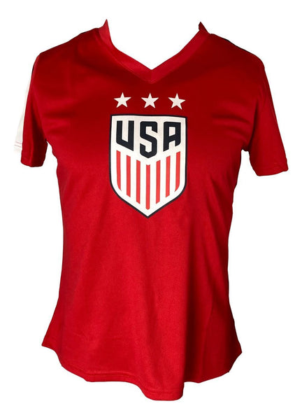 Featured is a Mia Hamm signed USA women's soccer jersey. This jersey has been hand signed by Hamm and comes with the Steiner CX hologram and certificate of authenticity. This jersey is size L. This jersey would make a great addition to any sports memorabilia collection. SPECIFICATIONS Autographed By: Mia Hamm Team: USA Sport: Soccer Authentication: Steiner Sports