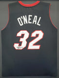 This is a framed Black Jersey, approximately 31x36 with the frame, that has been hand signed by Shaquille Shaq O'Neal. This is a custom jersey with no name brand. The approximate size is XL. It has nice sewn in name and numbers. This item has been certified authentic by Beckett Authentication (BAS) and comes with their tamper-proof sticker and matching certificate of authenticity.