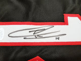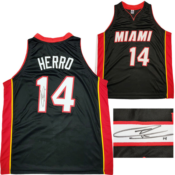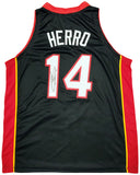 This is a Black Jersey that has been hand signed by Tyler Herro. This is a custom jersey with no name brand. The approximate size is XL. It has nice sewn in name and numbers. This item has been certified authentic by JSA and comes with their tamper-proof sticker and matching certificate of authenticity.