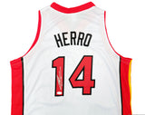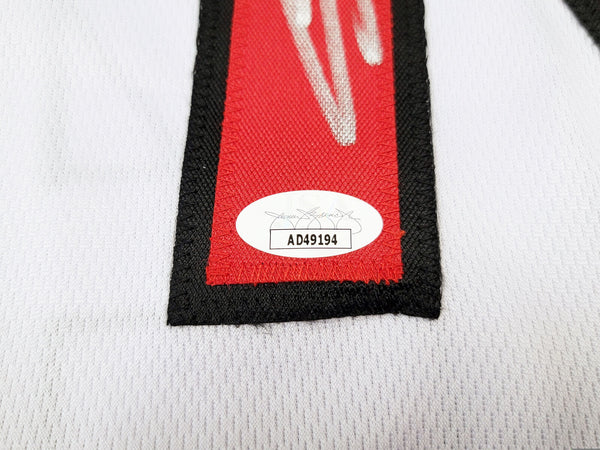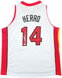 This is a White Jersey that has been hand signed by Tyler Herro. This is a custom jersey with no name brand. The approximate size is XL. It has nice sewn in name and numbers. This item has been certified authentic by JSA and comes with their tamper-proof sticker and matching certificate of authenticity.