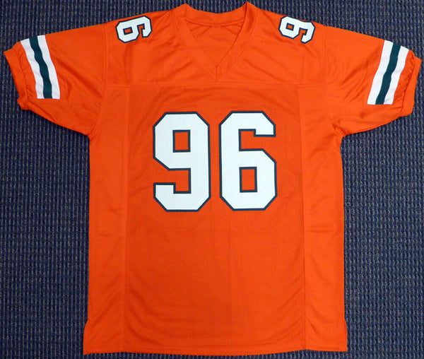 This is an Orange Custom Jersey that has been hand signed by Cortez Kennedy. This is a custom jersey with no name brand. The approximate size is XL. It has nice sewn in name and numbers. This item has been certified authentic by Beckett (BAS) and comes with their tamper-proof sticker and matching certificate of authenticity.