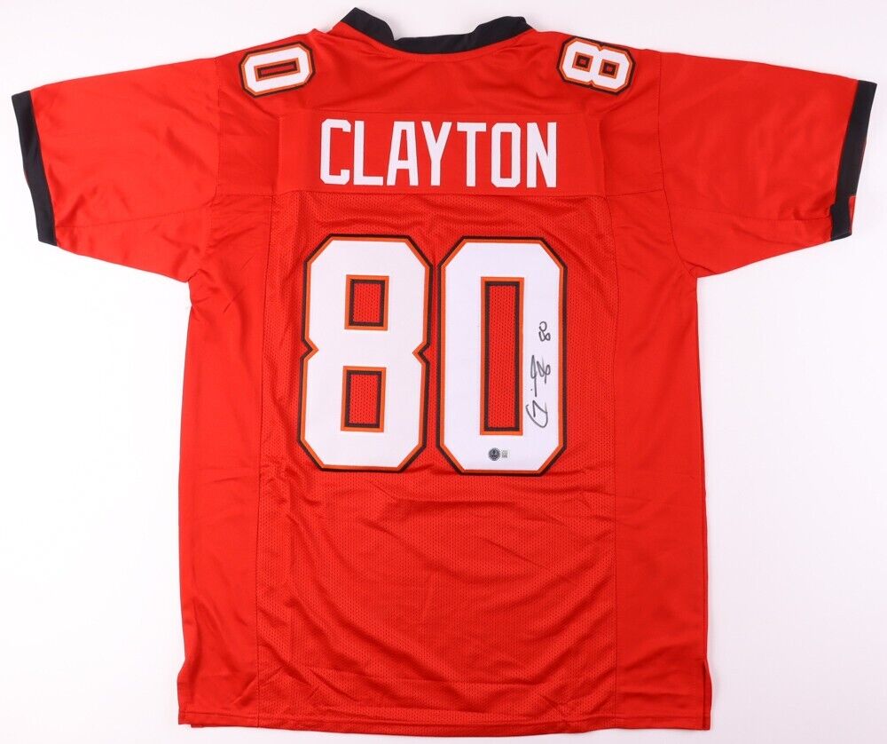 Custom on-field style jersey. Everything sewn on, size XL. Hand-signed in black felt-tip pen by Michael Clayton. The lot / autograph(s) includes an official Beckett Authentication Services serially numbered hologram and QR Code card for authenticity purposes.Authentication: Beckett QR Code card