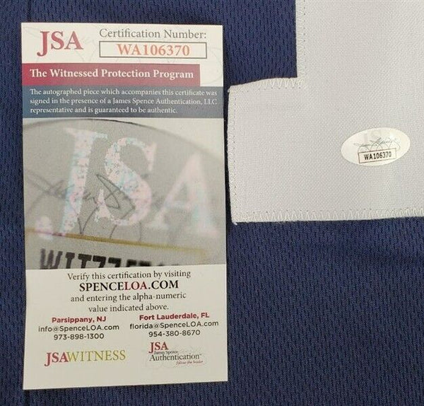 Custom on-field style jersey. Everything is sewn on, size XL. Hand-signed in black felt-tip by Michael Gallup. The lot / autograph(s) includes an official James Spence Authentication (JSA) hologram for authenticity purposes. The signing of this item was witnessed by JSA.Authentication: JSA Hologram