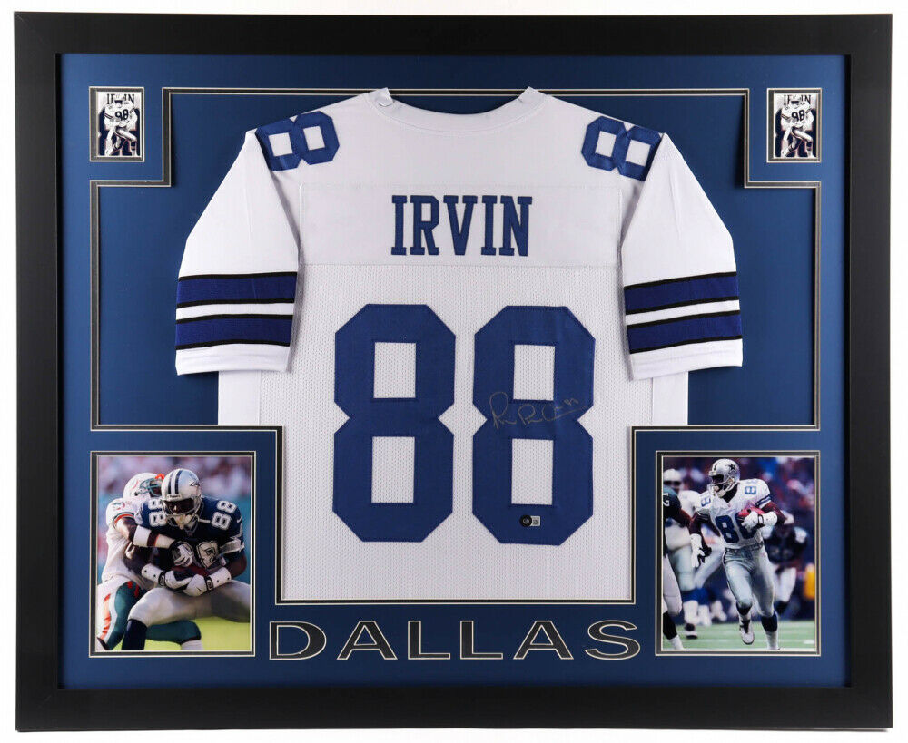 Michael Irvin Signed Dallas Cowboys 35x43 Framed White Jersey (Beckett Hologram)