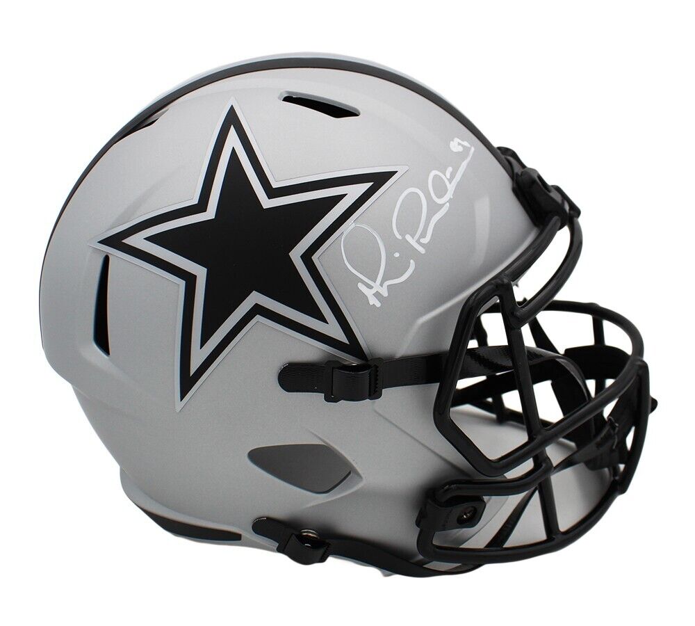 A Dallas Cowboys Speed Replica Rave NFL Helmet hand signed by Michael Irvin. The item and signatures are in excellent condition. Michael played college football at the University of Miami, and then for the Dallas Cowboys. He is a 3x SB Champ & 5x Pro Bowler. AUTHENTICATION: The item is accompanied by a Beckett Serial Numbered and Databased Hologram.