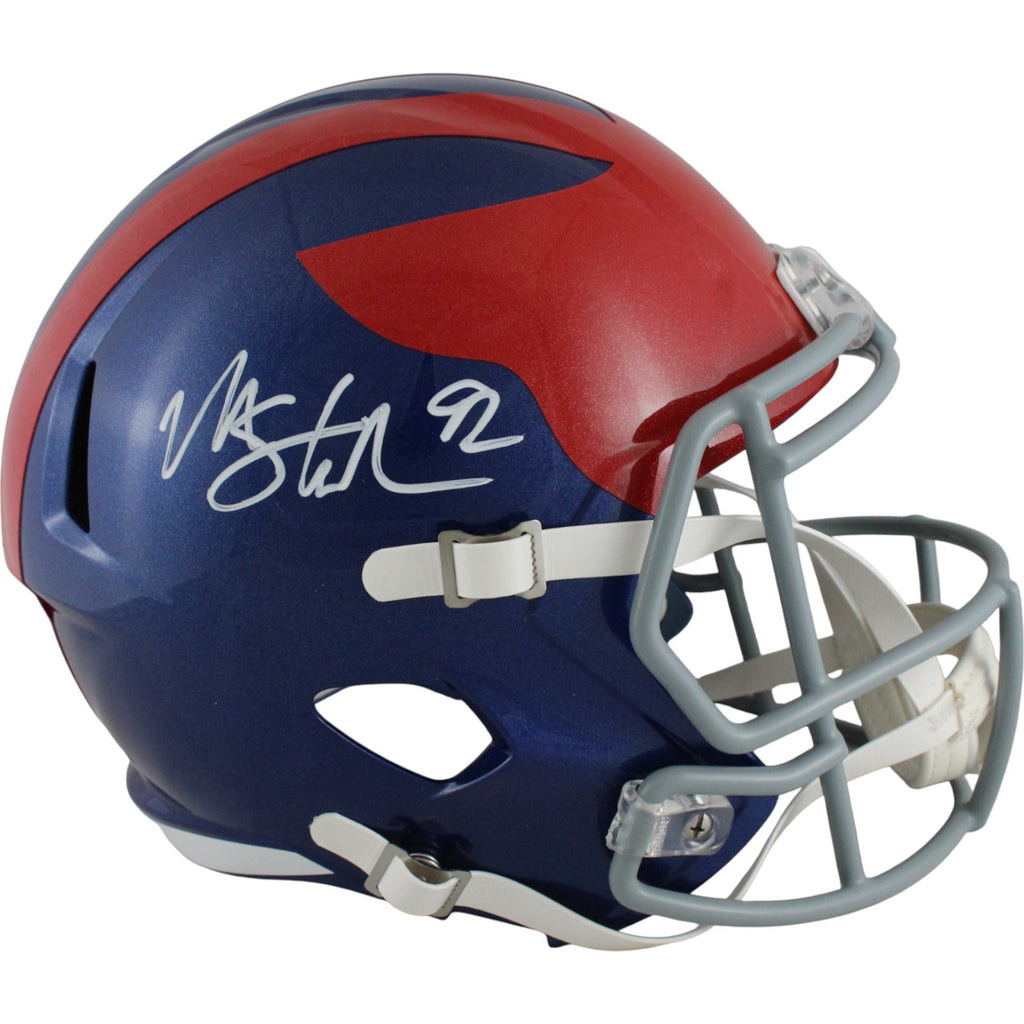 The number in the listing title is just an inventory sku for our records and is not the authentication number. This is a stock photo, unless otherwise noted. This is a New York Giants Full Size Replica 2024 Alternate Helmet that was personally autographed by Michael Strahan. Includes a certificate of authenticity from Beckett Authentication Services (BAS) and Denver Autographs.