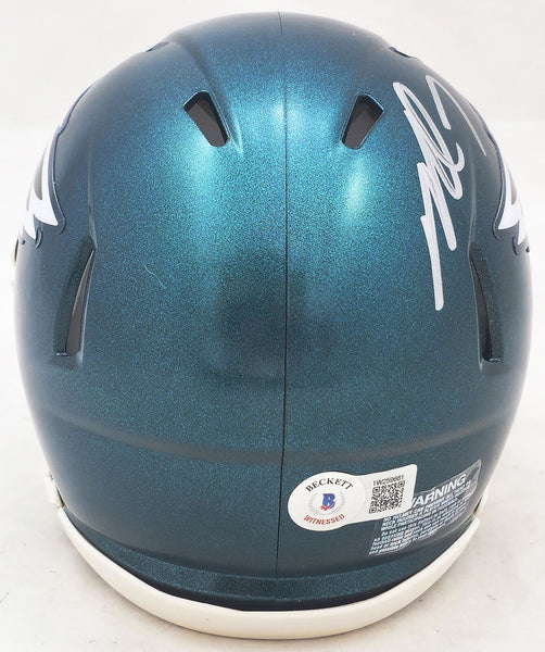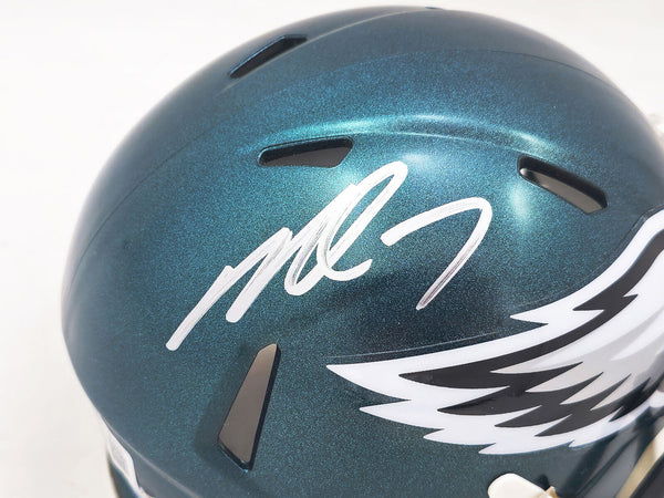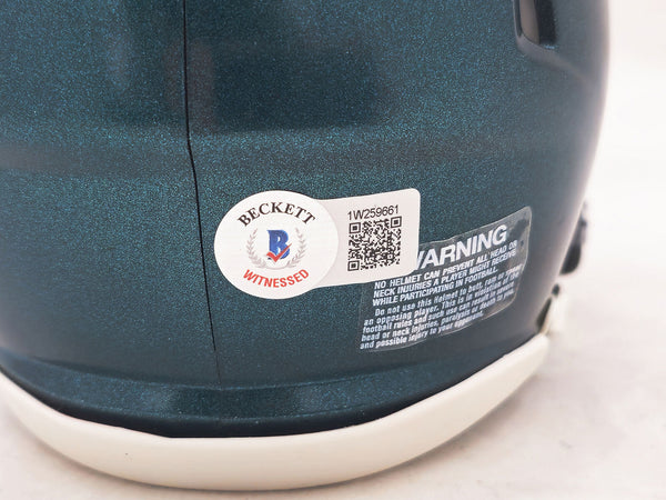 This is a Philadelphia Eagles Green Speed Mini Helmet that has been hand signed by Michael Vick. This item has been witnessed and certified authentic by Beckett Authentication (BAS) and comes with their tamper-proof witness sticker.