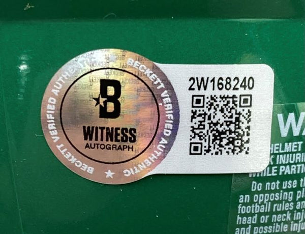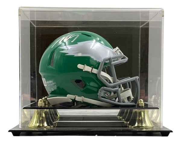 Featured is a Michael Vick signed Philadelphia Eagles mini speed helmet. This helmet has been hand signed by Vick and comes with the Beckett hologram and certificate of authenticity. Included with this helmet is a deluxe acrylic display case. This helmet would make a great addition to any sports memorabilia collection!. SPECIFICATIONS Autographed By: Michael Vick Team: Philadelphia Eagles Sport: Football Authentication: Beckett Grading Services
