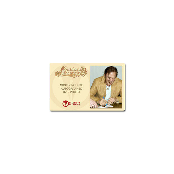 This 8x10 photo of Whiplash from Iron Man 2 has been personally hand-signed by Mickey Rourke during his signing with Celebrity Authentics. Rare signed photo from this fan favorite Marvel film and ships affixed with Celebrity Authentics serial-numbered and tamper evident Authentication Hologram and includes Celebrity Authentics Certificate of Authenticity featuring picture of Mickey signing photo. Please note: with multiples signed by the actor, a sample photo is used from stock to represent what you will receive. Exact autograph size and placement may vary.