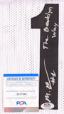 Custom on-court style jersey with everything sewn on, size adult XL. hand-signed and inscribed by Mikal Bridges.The autograph(s) includes an official PSA/DNA hologram and matching COA for authenticity purposes. The signing of this item was witnessed by PSA.Authentication: PSA COAThe lot / autograph(s) includes an official USA Sports Marketing (USA SM) hologram and matching COA for authenticity purposes.Authentication: USA SM COACustom on-field style jerseys are a more affordable option for autograph seekers. These jerseys do not have any brand name or tags and are made in the Philippines. They feature stitched on names and numbers and are made to look very similar to the on-field jerseys that the players wear. These custom jerseys are very commonly used in the memorabilia industry. Shop our ebay store / Friendly Confines Collectibles for thousands of different autographed jerseys