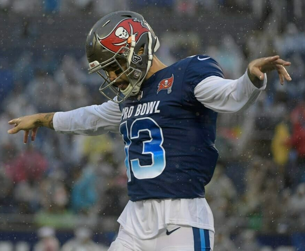 Custom on-field 2017 Pro Bowl style jersey. Everything is sewn on, size XL. Hand-signed by Mike Evans.The lot / autograph(s) includes an official James Spence Authentication (JSA) hologram and matching COA for authenticity purposes.Authentication: JSA COA