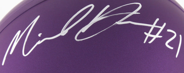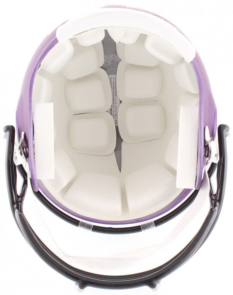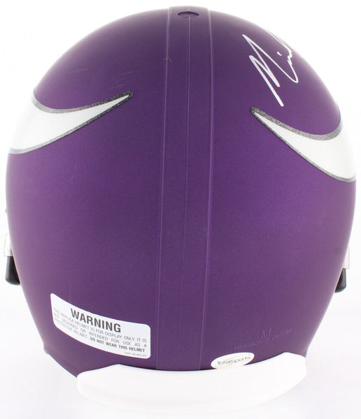 Minnesota Vikings full-size custom matte purple replica helmet. Hand-signed in silver paint pen by Mike Hughes. The lot / autograph(s) includes an official Total Sports Enterprises (TSE) hologram and matching COA for authenticity purposes. Authentication: Total Sports Enterprises COA