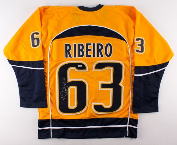 Custom on-ice style jersey. Everything is sewn on, size XL. Hand-signed in silver paint pen by Mike Ribeiro (Canadiens, Stars). The autograph includes an official Beckett Authentication Services serially numbered hologram and matching COA for authenticity purposes.Authentication: Beckett COA