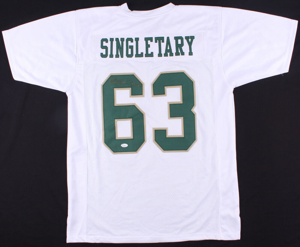 Custom on-field style jersey. Everything is sewn on, size XL. Hand-signed and inscribed by Mike Singletary (HOF).The lot / autograph(s) includes an official James Spence Authentication (JSA) hologram and matching COA for authenticity purposes. The signing of this item was witnessed by JSA.Authentication: JSA COA