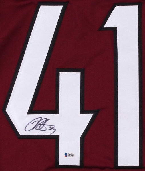 Custom on-ice style jersey. Everything sewn on, size XL. Hand-signed in black felt-tip pen by Mike Smith (Stars, Flames). The autograph includes an official Beckett Authentication Services serially numbered hologram and matching COA for authenticity purposes.Authentication: Beckett COA